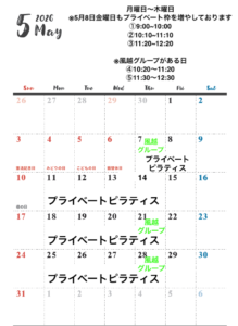 イレギュラーですが5月8日(金)もプライベートピラティスご予約いただけます。